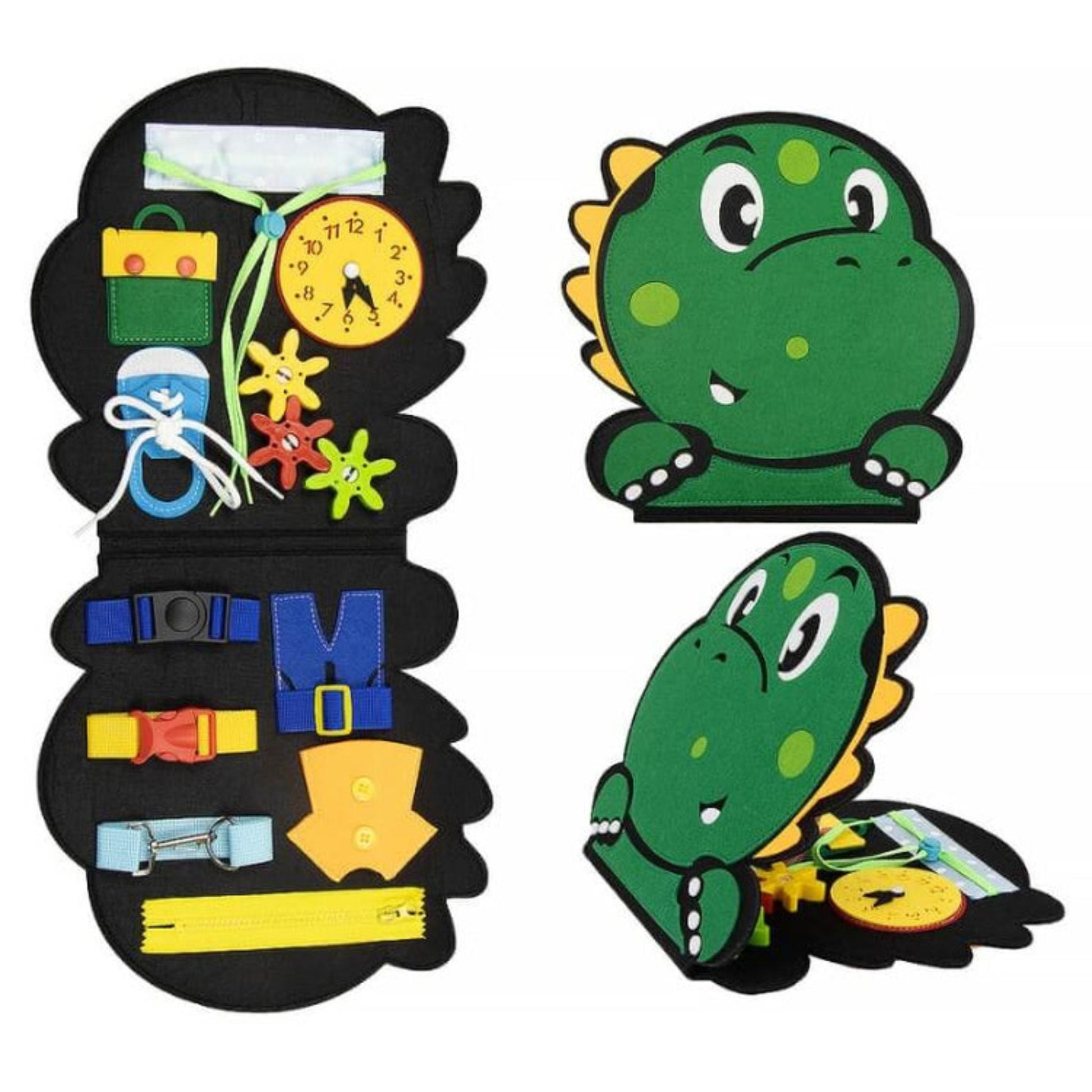 • Fosters Independence: Designed for self-guided exploration, the Dino Busy Board empowers children to learn and discover at their own pace, fostering a sense of achievement.