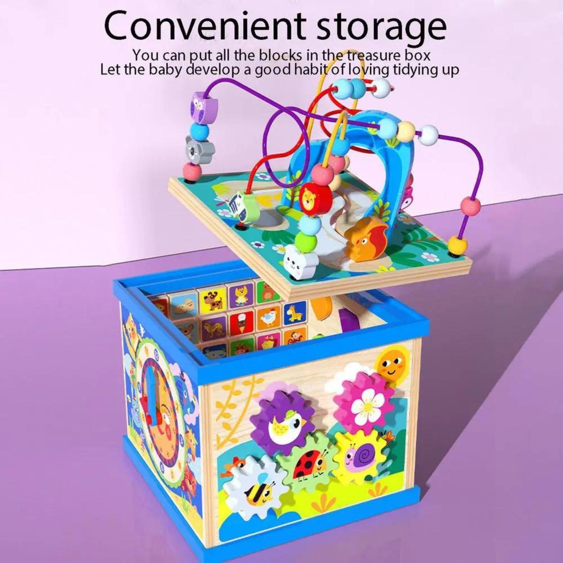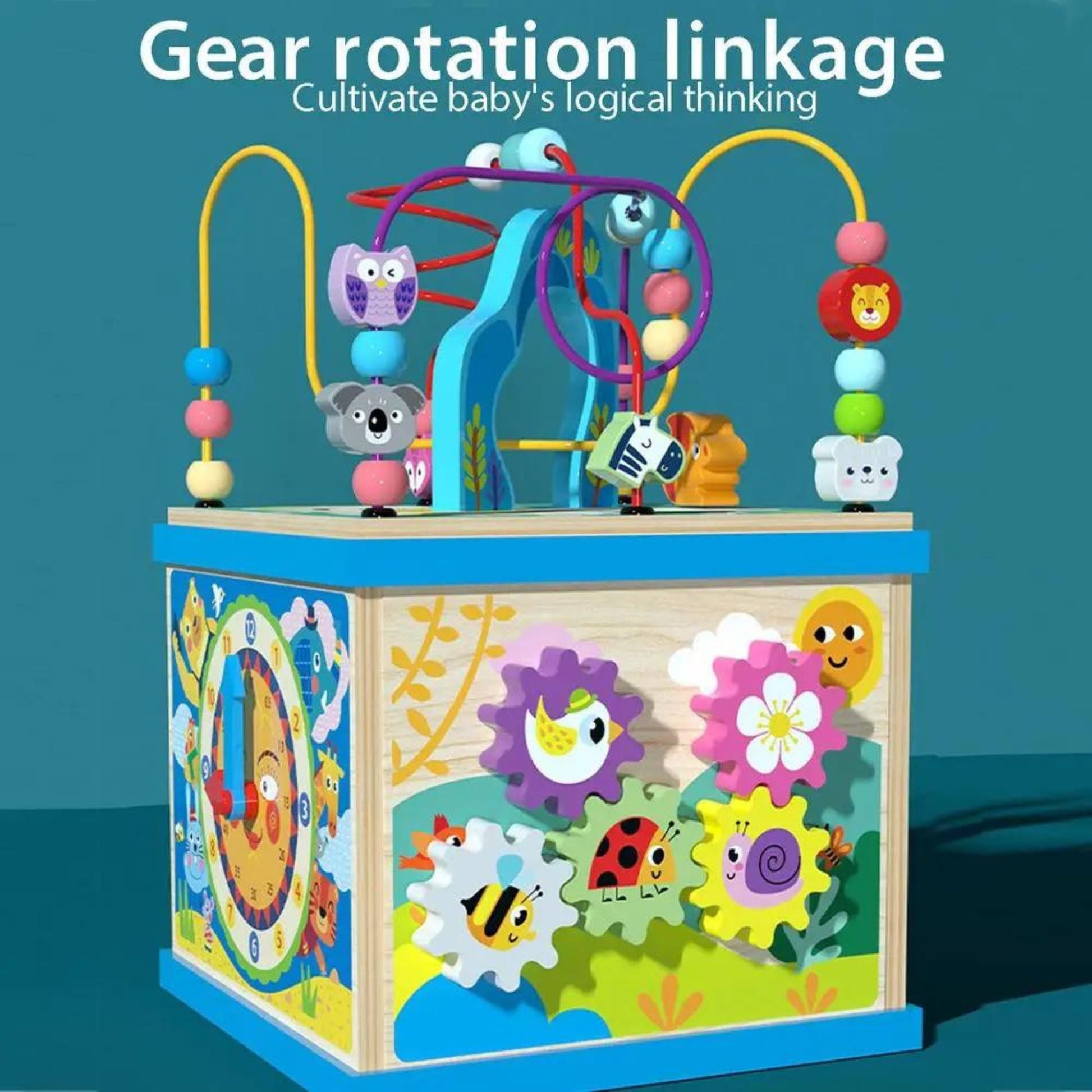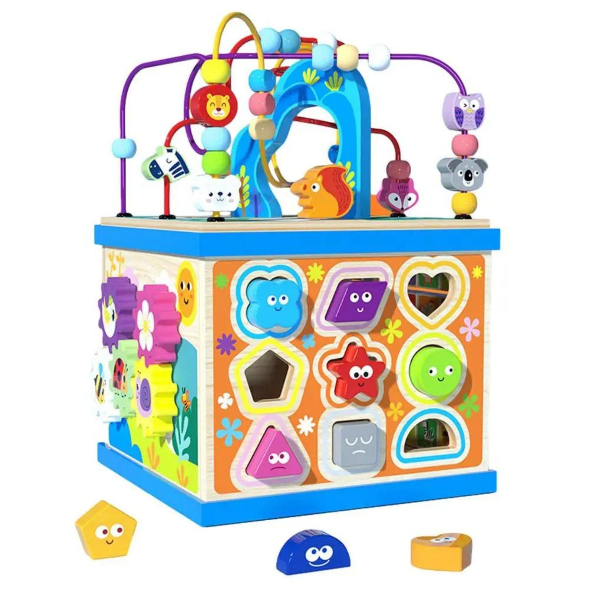 • Five Sides of Fun: Each side of the cube features a unique, engaging activity, including bead mazes, spinning gears, shape sorters, sliding animals, and an abacus, providing a rich variety of play options.